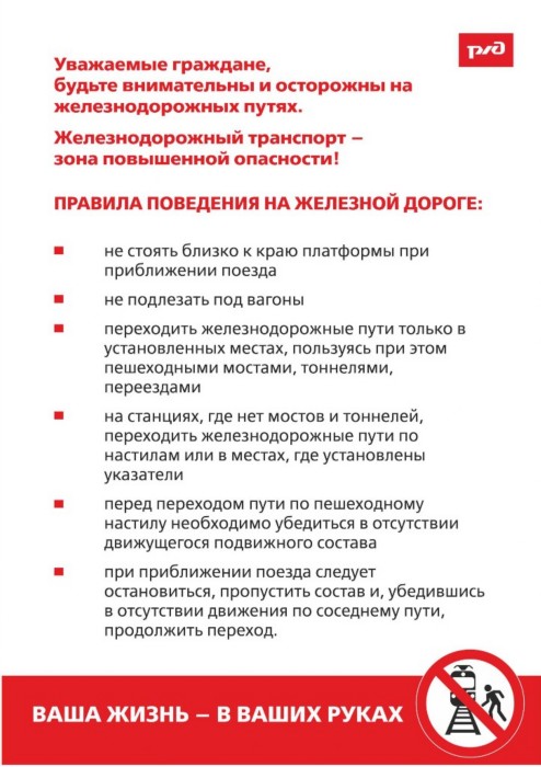 ОАО «РЖД» призывает родителей обратить особое внимание на разъяснение детям правил нахождения на железной дороге!